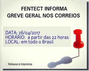 Segundo Elaine, as duas federações representativas da categoria em nível nacional, FENTECT e FINDECT, mantém o calendário da greve frente à intransigência da direção da ECT. “Dessa forma, seguindo a orientação das federações, ratificamos na nossa assembleia a deflagração da greve a partir das 22 horas desta quarta-feira. Este é um momento em que não podemos vacilar. Está em jogo o caráter público dos Correios e os nossos empregos. Não se trata de uma mobilização por aumento, mas de defesa dos Correios, do emprego e de nossos direitos”.
