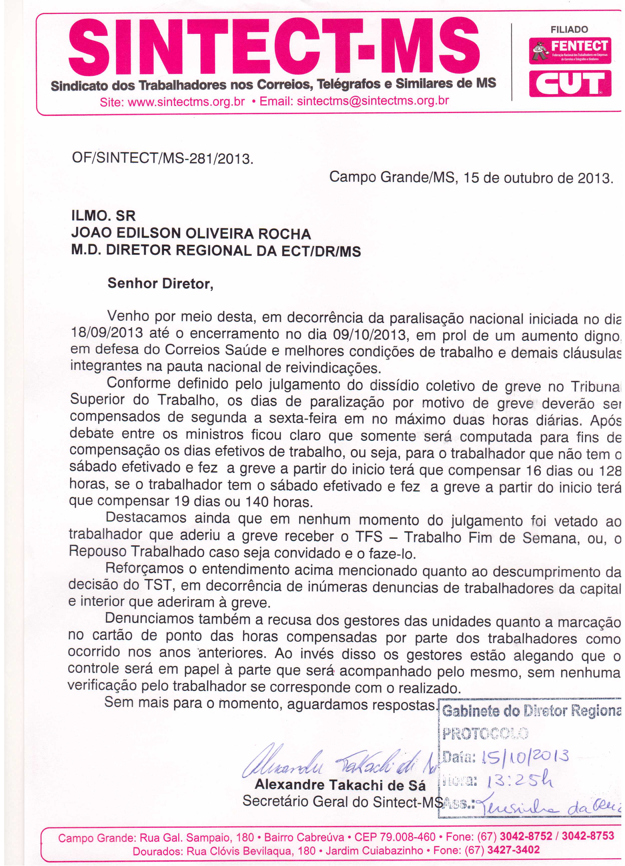 O Sintect-MS oficializou a irregularidade a diretoria regional por prática anti-sindical e assédio moral, todavia, não recebeu nenhuma resposta positiva sobre o alerta emitido pela nossa entidade. Em razão disso, protocolizou denúncia no Ministério Público do Trabalho cobrando medidas contra as retaliações da ECT que violam o direito de greve. Os trabalhadores que estão passando por essa situação entrem em contato com o SINTECT-MS, via telefone 3042-8752 ou por e-mail sintectms@sintectms.org.br, para o ingresso das medidas cabíveis.