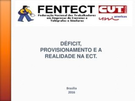 A FENTECT apresenta, mais uma vez, estudo da H&J Consultores Independentes, com destaques à má administração da ECT, o descontrole desenfreado dos gastos e indícios de provisionamento de recursos de bilhões de reais. Somados à ausência de concursos públicos e à continuidade dos programas de desligamentos da empresa, como o PDIA, sem reposição dos desligados, essas dificuldades acarretam ainda mais problemas que afetam os Correios e toda a categoria ecetista.