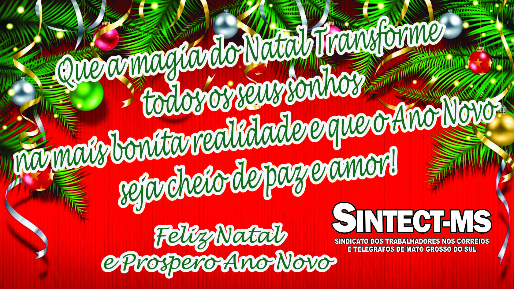 Que o Natal seja de sucessivas felicidades, com saúde, prosperidade e espírito de luta, revigorando ideais e manutenção das vitórias conquistadas ao longo dos anos, bem como não seja necessário renunciar objetivos definidos pela categoria, representada nos embates por este sindicato e sua diretoria.