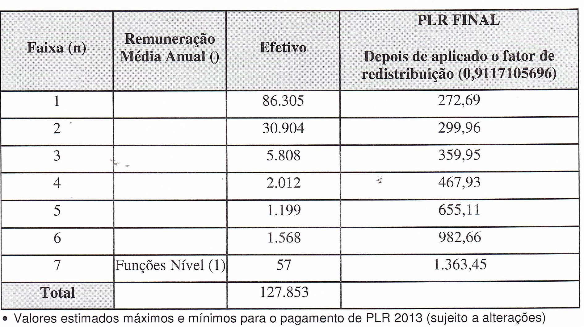 PLR 2013 Valor a ser pago e quantidade de trabalhadores atingidos
