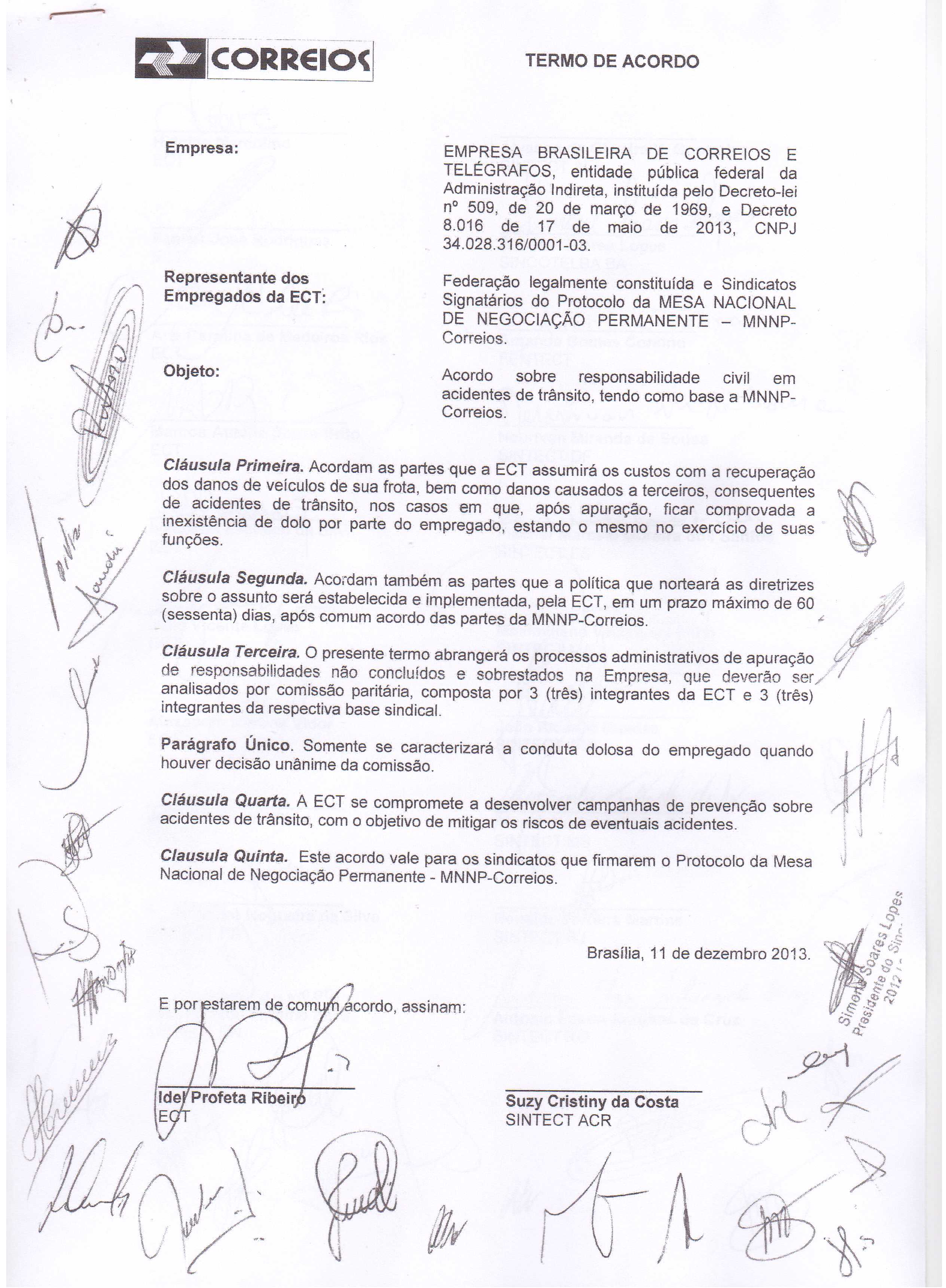 Além disso, a ECT se comprometeu em desenvolver campanhas de prevenção sobre acidentes de trânsito, com o objetivo de reduzir os riscos eventuais de acidentes.