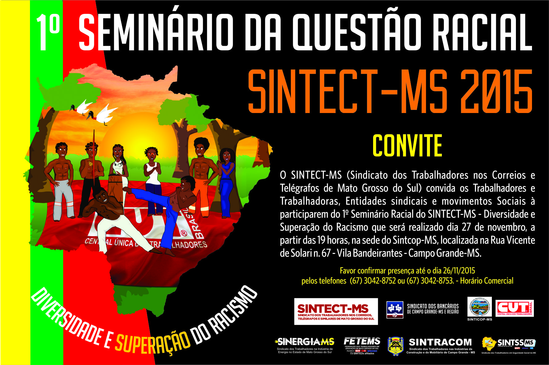 O Sintect-MS promove no dia 27 de novembro, o Seminário sobre a questão racial com o tema “Diversidade e Superação do Racismo”.