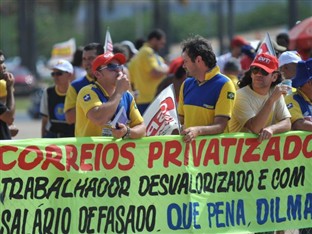 Em greve há mais de uma semana, trabalhadores dos Correios de todo o País fizeram nesta sexta-feira uma passeata para pedir apoio à pauta de reivindicações da categoria. Em Brasília, o grupo vai se reuniu, em frente ao Ministério das Comunicações.