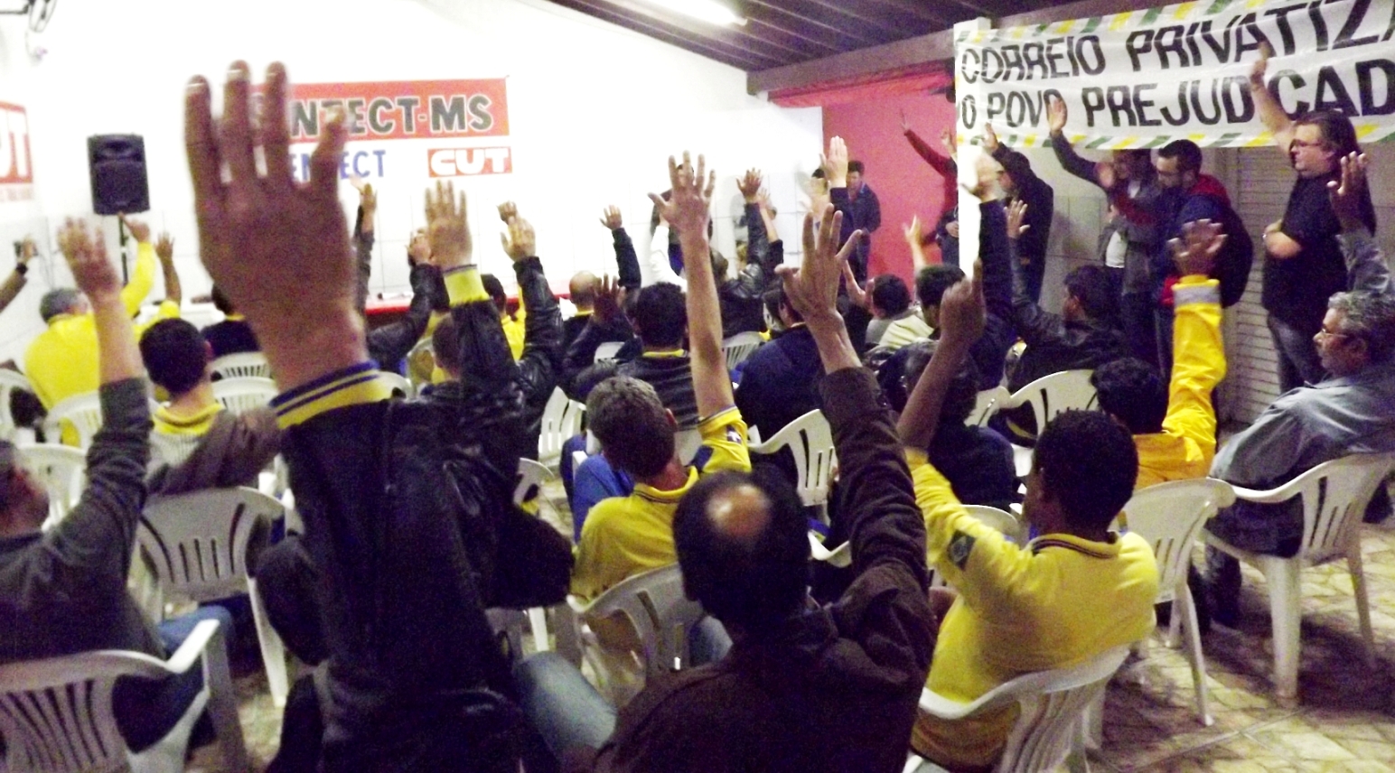 Os trabalhadores da Empresa Brasileira de Correios e Telégrafos (ECT) de Mato Grosso Sul, reunidos em assembleia nesta quinta, 8 de setembro, rejeitaram por unanimidade a proposta de empresa de reajuste salarial de 6,74% e diminuição dos benefícios. Deliberaram, também por unanimidade, pelo indicativo de greve a partir do dia 14.